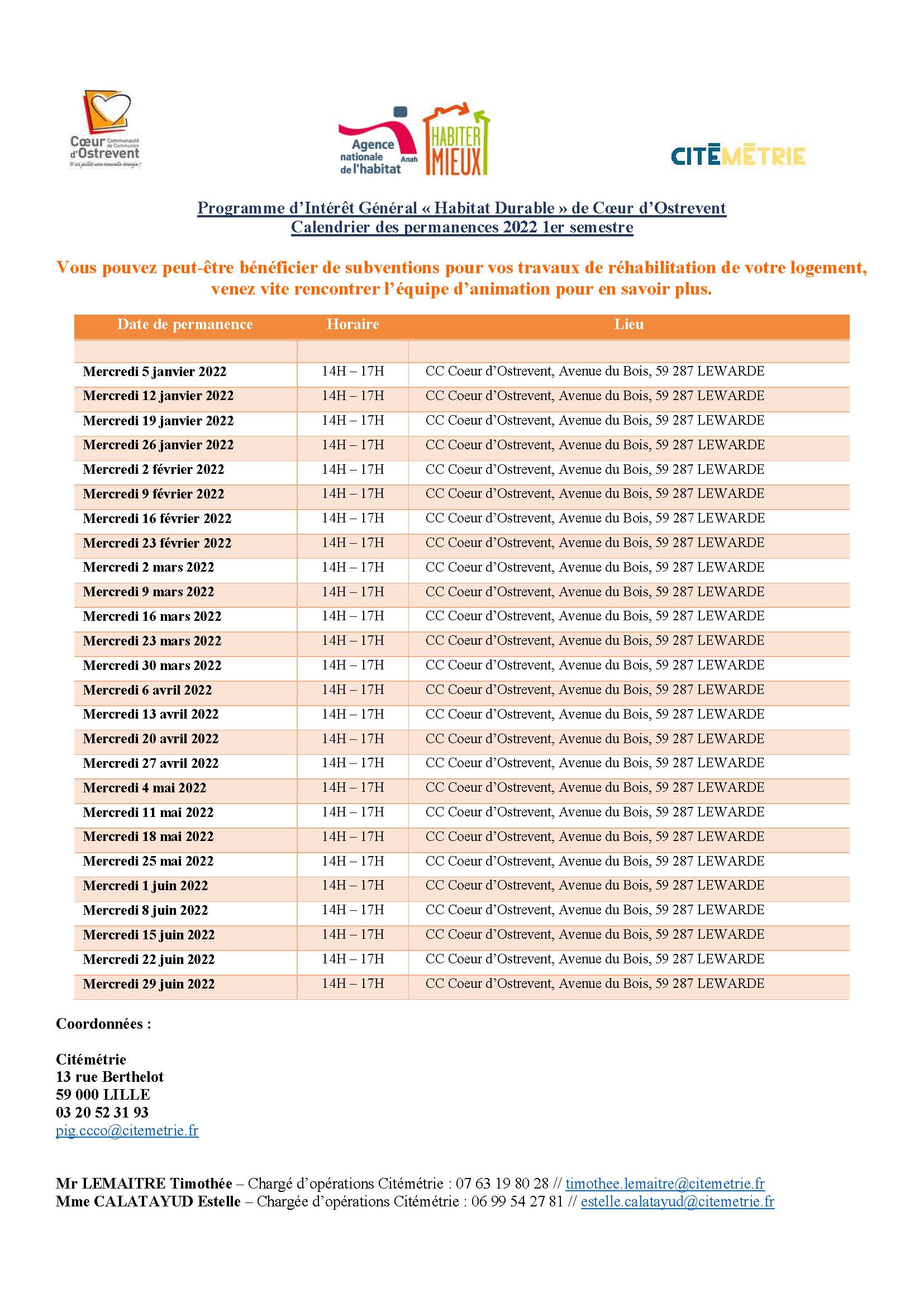CALENDRIER PERMANENCES CCCO 2022 1er semestre