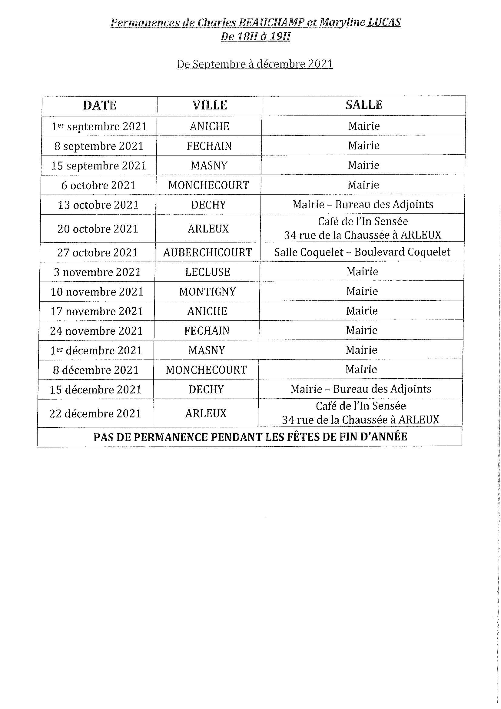 PERMANENCES 09 A 12 2021 M BEANCHAMP ET MME LUCAS